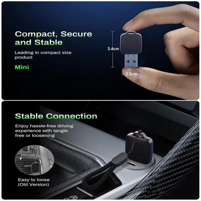 • Stable & Fast ConnectionThe Wireless CarPlay Adapter is engineered for a smooth, low-latency driving experience using advanced AI algorithms. Enjoy quick auto-connection upon ignition and stable performance for uninterrupted navigation, music streaming, and hands-free calls