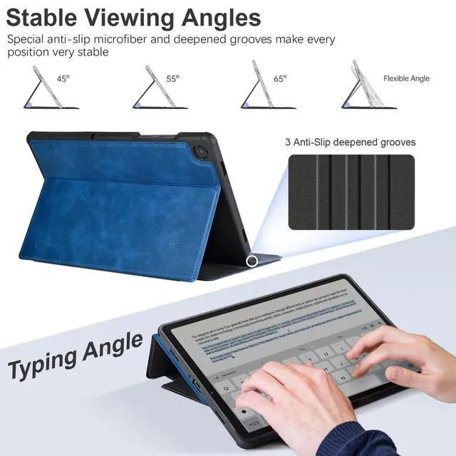 Standing Angles: this case features 3 viewing angles and 1 typing angle, The ability to adjusting the stand to various angles reduces neck strain during prolonged typing, video calls, or web browsing, making it more comfortable for work or leisure. The anti-slip microfiber Lining and deepened grooves make every position very stable and protect tablet screen against scratches ^^
