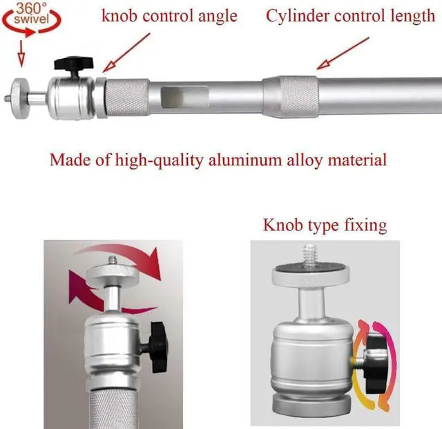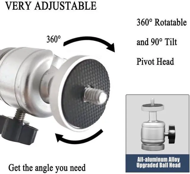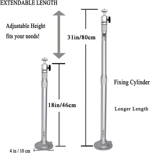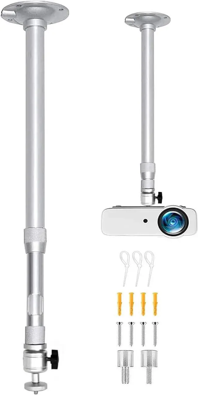 FULL-MOTION - Adjustable projector mount has a 360 rotation and 120 angles adjustment pivot ball head. Just swivel your projector. Upgraded durable larger ball head for better angle fixation to get better projection view. ^^ EXTENDABLE LENGTH - Projector mount in stainless silver coating with extension pole inside has an extending length from 18-31in/46-80cm. Great as drop ceiling projector mount for high roof. ^^ UNIVERSAL MOUNTING - Universal Mini Projector Mount is for almost all mini projectors with 3 sizes of screw diameters, 0.153 / 0.232 / 0.25 in ( 3.9 / 5.9 / 6.35 mm).