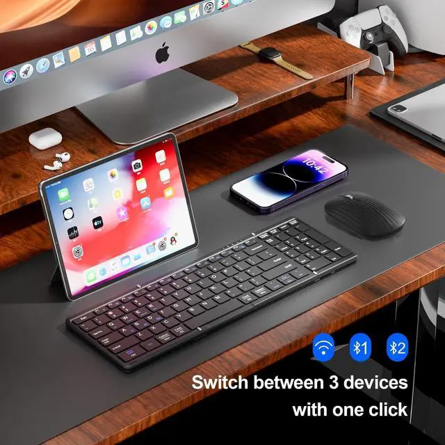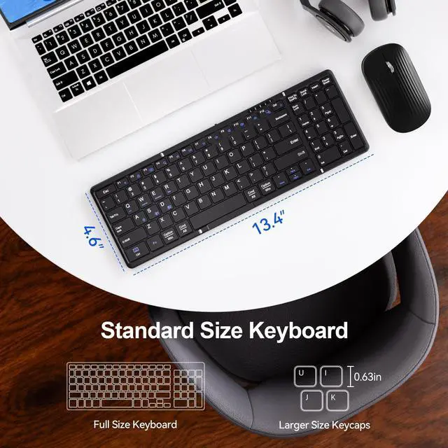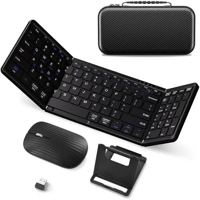 Foldable Keyboard and Mouse, JPHTEK True Full-Size Folding Wireless USB-C Charge Keyboard Mouse Combo for Business Travel, Compatible with Laptop iPad Tablet for iOS Android Windows Mac OS Foldable Keyboard and Mouse, Folding Bluetooth Keyboard Mouse Combo for Business Trave, Full-Size BT 5.1 x2 + 2.4G Portable Wireless Rechargeable Travel Keyboard Mouse for Windows Android MacOS iOS Black