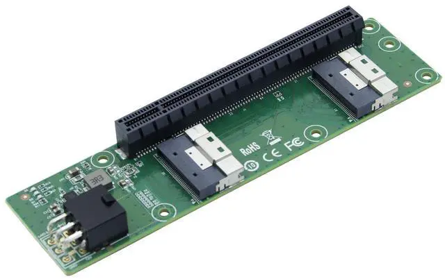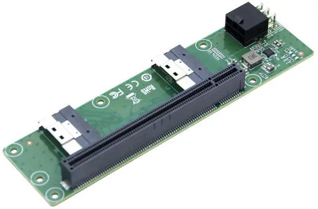 A PCIe x16 slot can be expanded by inserting a PCIe protocol expansion card with two SFF-8654 connectors. This provides greater bandwidth and faster transmission speeds.