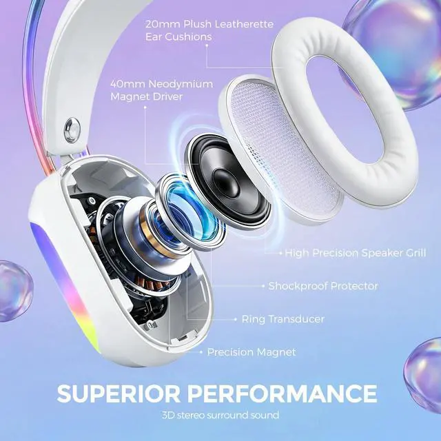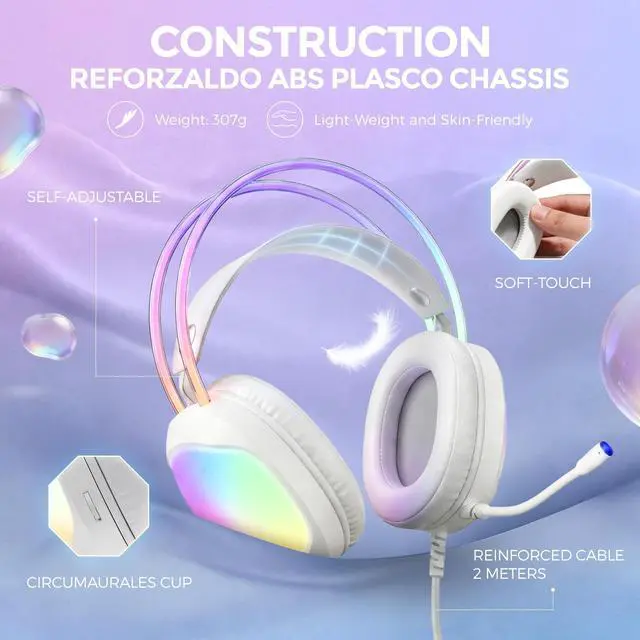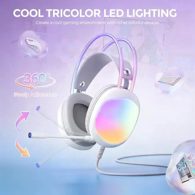 Immersive Surround Sound--- This headset with mic delivers a highly immersive audio experience with virtual surround sound, allowing you to hear subtle in-game details for precise positional awareness. Communicate clearly with teammates using the integrated microphone to secure a true competitive edge. ^^ Vibrant RGB & Durable Build--- Features flowing RGB lighting to enhance your gaming setup. The braided cable is durable and long enough for flexible use. ^^ Comfort for Long Sessions--- Designed for extended use with protein skin ear pads, memory foam cushions, and an adjustable headband for a comfortable, snug fit.