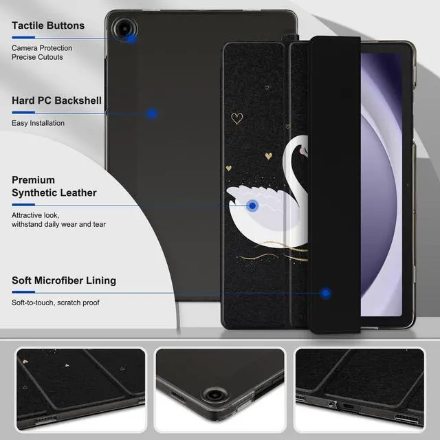 Models: SM-X210, SM-X216, SM-X218. Precision-engineered design ensures a snug, secure fit with full access to all features. ^^ Slim & Protective Premium PU leather front, hard clear PC back, and soft microfiber lining deliver daily scratch and bump protection without bulk. ^^ Smart Cover Magnetic front supports auto sleep/wake, protecting the screen and preserving battery life in your bag or on the go. ^^ Hands-Free Stand Stable tri-fold stand offers two angles for viewing and typinggreat for videos, classes, and work. ^^ Precise Cutouts Easy access to camera, speakers, USB-C, and buttons; lightweight, easy to install and remove.