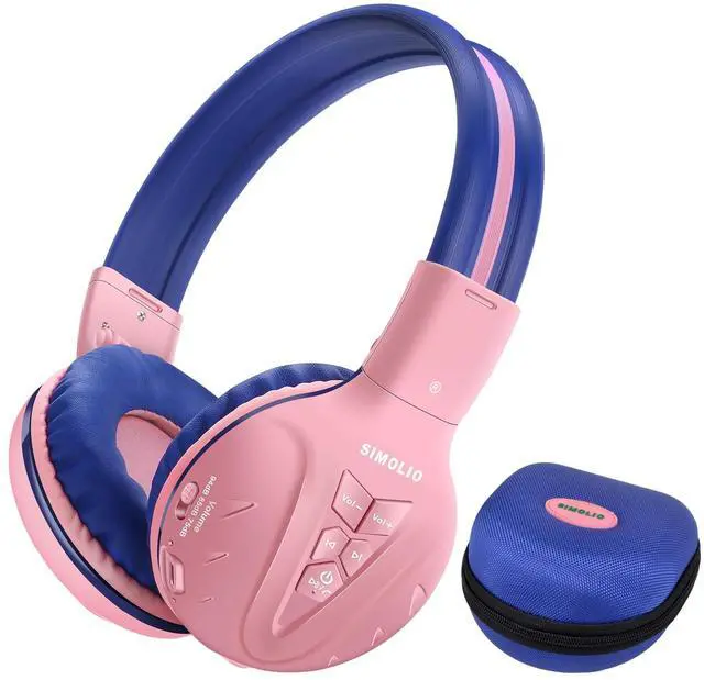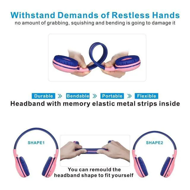 Kids Bluetooth Headphones with 3 Switchable Volume Limited Levels for Hearing Protection -- Adopt exclusive 3-level switchable volume limiter(75dB/85dB/94dB) to protect vulnerable and sensitive ears of kids while give parents a piece of mind, not having to constantly monitor the volume. It effectively protects your little ones from progressive hearing loss in different environments. (75dB/85dB in quiet places or 94dB in noisy surroundings). 2 superior speakers provide crystal clear sound. ^^ Noise Isolation Stereo Wireless Bluetooth Headsets-- Adjustable headband w/ memory stainless steel strips give the headphones some impressive durability & flexibility. What's more, the extra detachable Nylon fastening straps (Need to buy separately from SIMOLIO brand store) can be added to the headbands to get the perfect fit for the toddlers.
