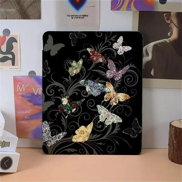 Beautiful Flower Butterfly Case Compatible with IPad 9th 8th 7th Generation 10.9 Inch 2021-2018,Funny Cover with Trifold Stand+Pencil Holder for Boys Girls,iPad 10.9in 2022