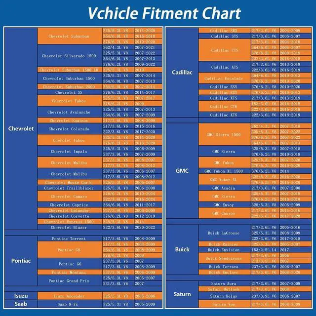Engine Compatibility: Compatible with a range of engine sizes including 4.3L, 5.3L, 6.0L, and 6.2L, ensuring broad applicability for various GM models. ^^ Unlock Full Power with