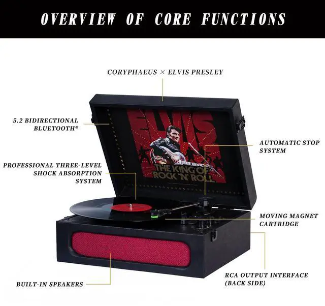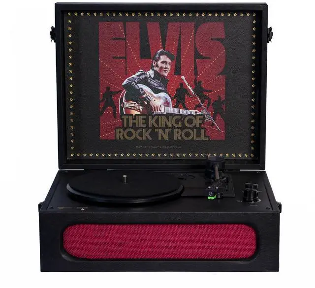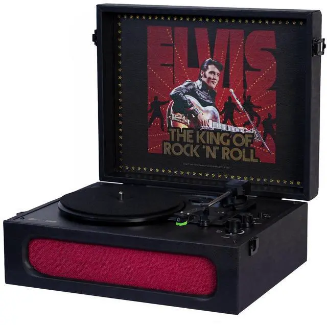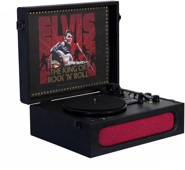 Classic: The Arkrocket x Elvis Bluetooth Portable Record Player is inspired by Elvis Presley '68, offering a stylish vintage look that serves as both a music device and a beautiful piece of decor. ^^ Bluetooth