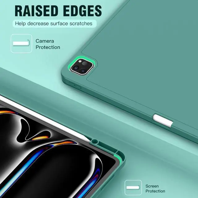 ZryXal New iPad Pro 13 Inch Case (M5) 2025 / (M4) 2024 with Pencil Holder, Smart iPad Case [Support Pencil Pro and Pencil (USB-C)], Support Touch ID and Auto Wake/Sleep (Forest Green)