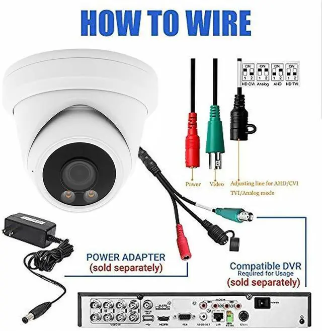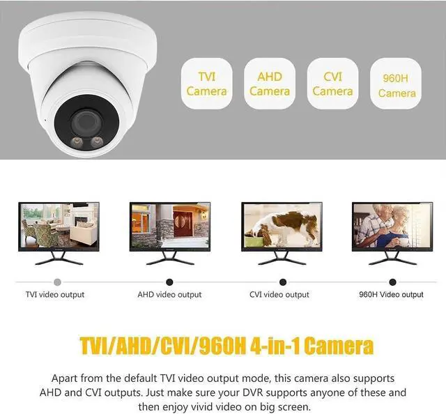Compatible with Most Brand CCTV System- This camera model support 4 Video Format Outputs Supports 4K 8MP HD-TVI, HD CVI, AHD and 960H 1000TVL. It works with TVI DVR, CVI DVR, AHD DVR and analog DVR. Default Video output is 8MP TVI Mode, compatible with all DVRs by switching video output mode. Video Mode must be switched according to your DVR type.