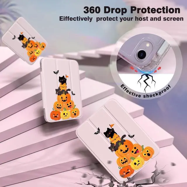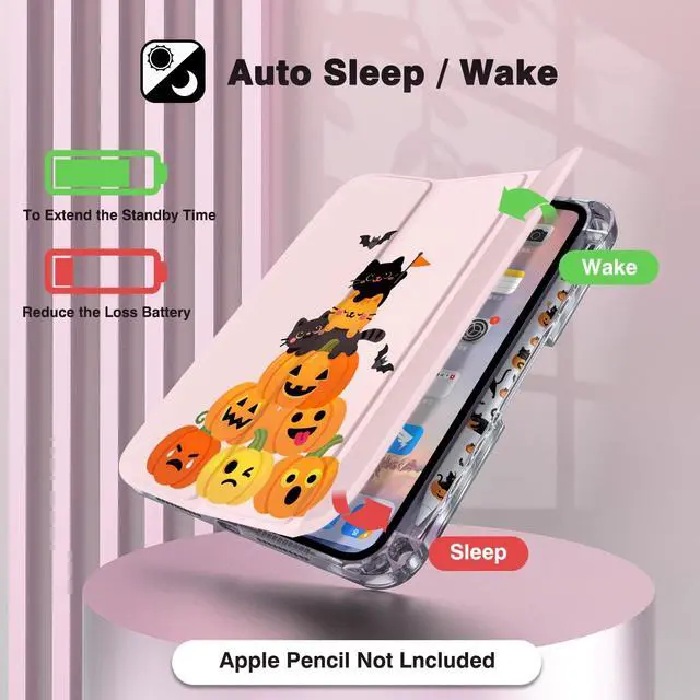 Cute & Protective Design: Enjoy full-body protection with reinforced PU leather front cover and a durable clear acrylic back that resists fingerprints and scratches. Cute black cats piled on top of pumpkins design shows off your iPad while keeping it safe and clean. ^^ Pencil Holder +