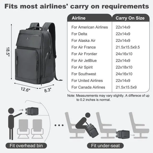 Material]: Constructed from water-resistant fabric, this laptop backpack shields your 17-inch laptop and important items from rain and spills. Its built to keep your gear safe and dry, offering peace of mind for every journey ^^ [Flight-Approved