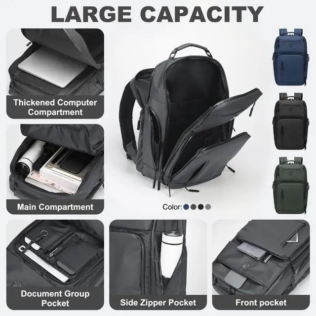 Open Design]: The 180 lay-flat design of this 17-inch laptop backpack lets you breeze through security checks. Just open the zip, lay it flat, and have instant access to your laptop and essentials-perfect for smooth and efficient airport experiences ^^ [Ergonomic