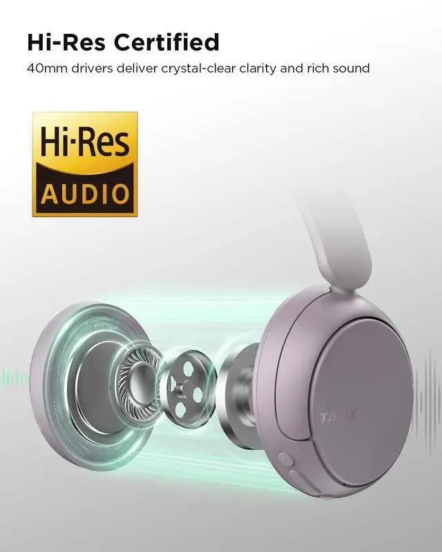 110H Ultra-Long Battery Life Enjoy up to 110 hours of playback on a single charge (65 hours with ANC on). Get up to 4 hours of playtime from just a 5-minute fast charge. Never Stop Listening with USB audio for wired listening. ^^ Hi-Res Certified Audio TALIX H30 wireless bluetooth headphones feature 40mm dynamic drivers that deliver crystal-clear clarity and rich sound. ^^ Bass Boost Mode Feel the deep, resonant bass with enhanced low-frequency response for richer, punchier sound. Perfect for EDM, hip-hop, and bass-heavy tracksdelivering powerful impact and a more immersive listening experience.