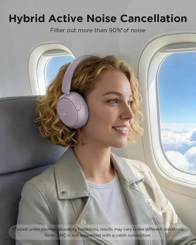 ^^ Hybrid Active Noise Cancellation Powered by advanced ANC technology, the noise-cancelling headphones actively detect and reduce background noise across a wide range of environmentshelping filter out up to 90% of ambient sound. Ideal for airplanes, trains, offices, or daily commutes. ^^ Crystal Clear Calls Equipped with 2-mic and built-in ENC algorithm, the over ear headphones accurately capture your voice while reducing background noiseso you sound clear and natural on every call, even in busy or noisy environments. ^^ Lightweight ComfortCrafted with ultra-soft premium protein leather, slow-rebound memory foam, and an ergonomic design, The H30 wireless bluetooth headphones provide all-day comfort for extended listening sessions.