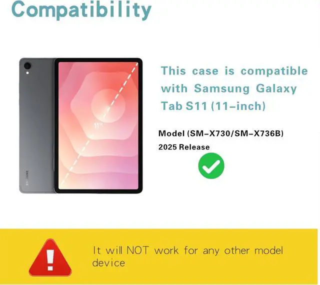 • Compatibility: Specifically designed for Samsung Galaxy Tab Tab S11 (11-inch) (Model SM-X730/SM-X736B) 2025 Release tablet. It will NOT work for any other model device.