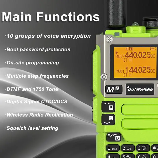 USB Rechargeable: No need for batteries(but it needs to connect to the USB-C charging cable all the time ), simply recharge via USB for convenience and cost-effectiveness ^^ Featuring an intuitive keypad with keyboard lock function, operation is easy and convenient, making it perfect for self-driving, mountaineering, and other outdoor activities ^^ With its versatile functions including AM reception, FM radio, NOAA weather forecast, 512K expansion and more, this walkie-talkie is not just a communication device but also a survival tool. Its long-distance communication capabilities ensure that you stay connected with your team members or loved ones no matter where you are. Plus, with firmware updates supported, you can always enjoy the latest features and enhancements ^^