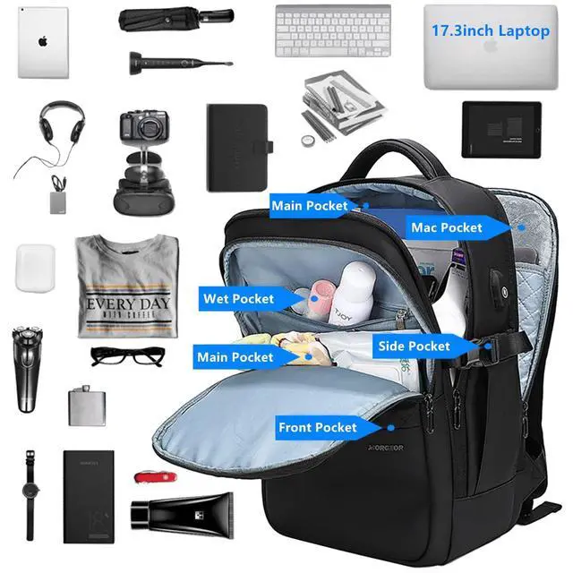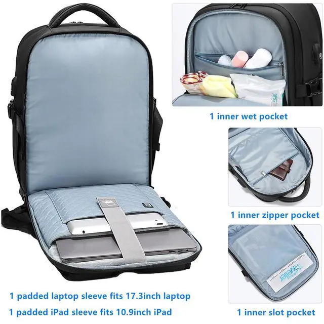Large Capacity: 18.5" x 12.6" x 6.7", This business laptop backpack for men features 3 spacious main compartments with 1 wet pocket and padded laptop sleeve for 17.3 inches, along with 14 pockets for your items, keep your essentials organized ^^