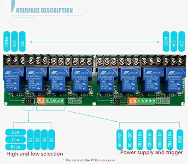 High-level trigger: 12-24V relay ON; 0- 8.5V relay OFF;