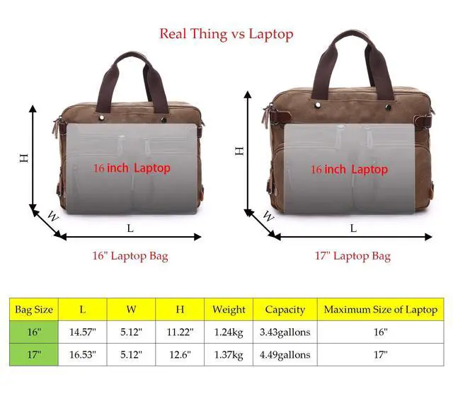 ^^ MATERIAL & SIZE: The work laptop tote bag is made of canvas and lined with polyester. It is size is 16.53 * 5.12 * 12.6 inch (L*W*H); weight 3.02 lbs.