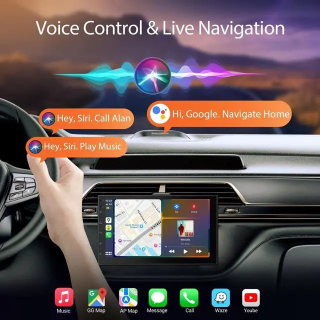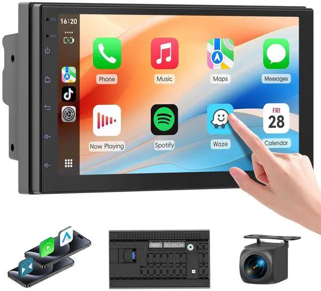 Carplay / Android Auto & Voice Control This double din car stereo supports both wireless and wired apple carplay & Android Auto. Your phone connects automatically when the car starts. Use voice commands via Siri or Google Assistant for hands-free navigation, calls, messages, and musickeeping you focused on the road while enjoying smart connectivity ^^ Hi-Fi Sound ASP & Subwoofer Output Built-in 5.1 -channel deliver crystal-clear audio with rich bass. Use the 12-band ASP to customize your sound. One subwoofer RCA outputs support powerful bass setups, while the large rear heat sink prevents overheating for long, stable playback ^^ 7" HD Touchscreen & Mirror Link Enjoy sharp visuals on the 7-inch IPS display (1080x600) with wide viewing angles and responsive touch.