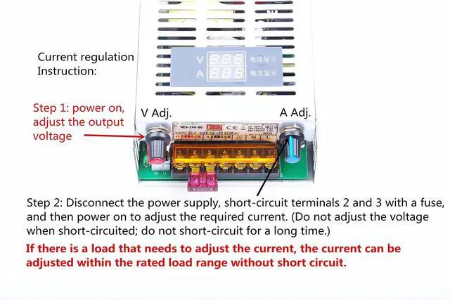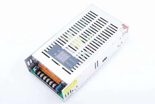 3. Pay attention to positive and negative, do not reverse. 4. If use motor, fan and other inductive load, please pay attention to the loads maximum starting current parameter. This parameter shall not be higher than the power supplys max. current. 5. Otherwise it may damage the power supply. Or allocate the soft starting protection circuit for the load to absorb the impact current. 6. Output voltage 0-100% continuously adjustable, with digital output display; output current is not adjustable, limit the highest value; so in the choice, please according to the actual needs. 7. The internal components of the power supply are the best quality, the factory has to undergo a rigorous test, non-general cheap power supply comparable. Can be used for high-end industrial equipment power supply.