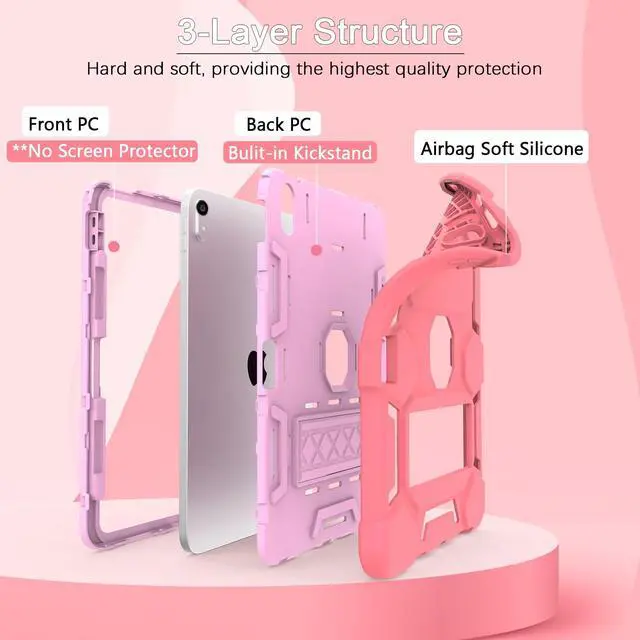 [Note: Package Without the Pencil] ^^ Upgrade Kickstand10th generation ipad case built-in sturdy kickstand, extremely convenient and easy to push out and back in. Allows easy access to your favorite shows, movies, and games while on the go. ^^ Kids Proof Three Layer design combines a premium shockproof silicone outer layer with a hard PC cover; excellent ipad 10.9 inch case for children and withstands accidental drop, bump and shock damage. Great ideal for kids, students, teachers, or engineers. It is the best choices for kids, boys, husband, boyfriend, family and friends.