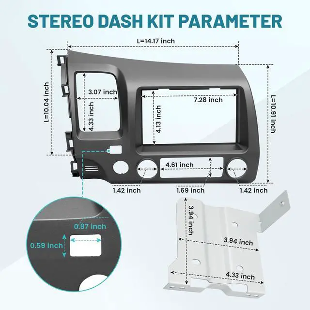 bracket: 7.08 inch x 3.93 inch (Please refer to the picture for specific size) ^^ Civic dash bezel face plate for is designed for the installation of new aftermarket double din radio in factory location, inner bracket frame perfect to cover the gap between the dash and the aftermarket stereo ^^