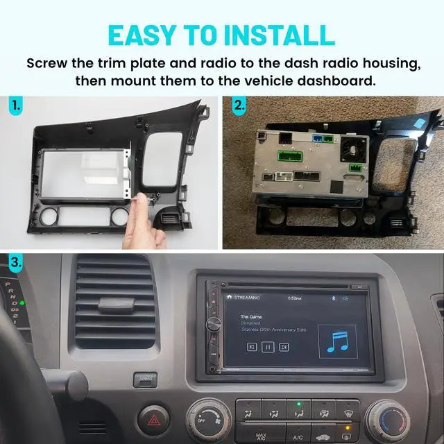 Easy to install: Attach the factory mounting brackets and the double DIN trim plates to the double DIN radio with the screws of the factory radio bracket. No other installation parts are required ^^