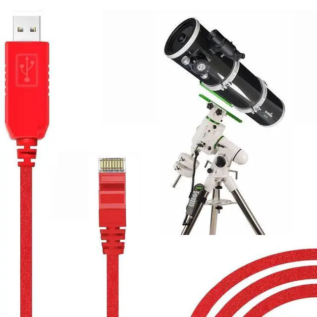 Application scenes1. To connect PC/Laptop and Skywatcher GOTO mounts. Works well with models like Heq5 pro, Azeq5, Azeq6, Eq6-R, EQ6-R Pro and EQM-35 pro, and ASIAIR. 2. This cable works well with Orion Sirius Mount on Windows to ZWO ASI AIR box (Raspberry Pi) ^^ Adapter Cable 16.5FT cable. USB to RJ45 Adapter Cable. Built in FT232RL chip. Please check your mount model and port before placing an order. ^^ Supported OSSupport all windows version Win7/8/10/XP/, and iOS/Linux/Android. Windows 10 and Ubuntu-Mate 18.04 automatically identify the cable and register the serial port out of the box.