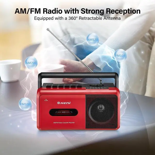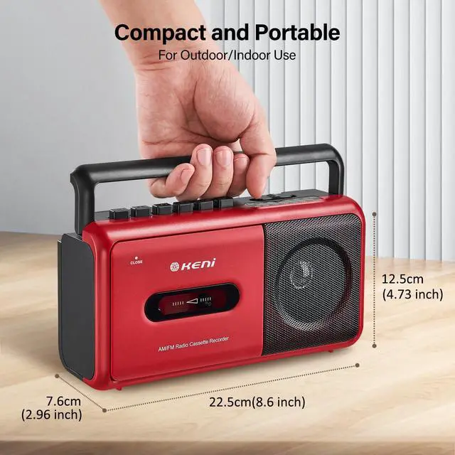 [ Elegant Cassette Player ] The outstanding external appearance design and easy operation will provide a elegant product for you who aspire for life taste, playback your old mix tapes, let you return to the old days and relive your good memories past. ^^ [ Best AM/FM Reception ] This cassette radio player equiped with long antenna and upgrade chip, has a great reception to receive AM/FM stations. and it has a big speaker that can easily play nice stereo sound. 3.5 mm headphone jack for you to plug your headphone. ^^ [ Cassette Audio Recorder ] Recording through the built-in microphone from the external voice or radio.