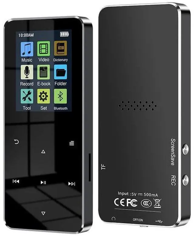 RIJAHO 64GB MP3 Player with Bluetooth 5.0 2.0 inch Screen Touch Button Portable Hi-Fi Lossless Music Player Speaker with FM Radio Recorder Alarm Clock Pedometer Wired Headphone Support Card (Black)
