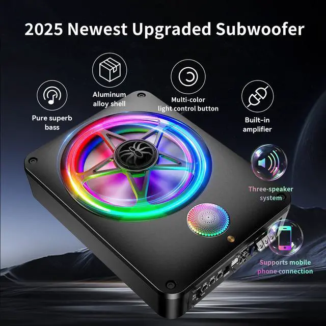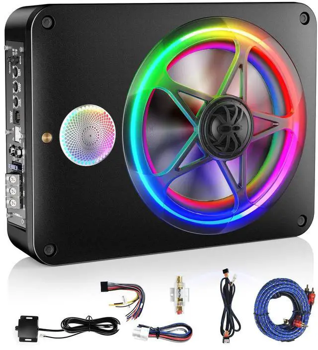 Goodbye To Boring Road Trips: If you're looking for a unique and practical gift for your family who commutes frequently or loves road trips, this underseat subwoofer is the perfect choice! Whether it's the morning or evening rush hour or a long drive, this powered subwoofer car audio will help them relax and enjoy high-quality music. For someone who drives often and loves great sound, this car subwoofer will become their favorite accessory, while also showing your care and thoughtfulnessEnjoy Dynamic Driving Experience With Your Family: Transform your family road tripswill become more enjoyable with this car subwoofer! Install in your car' trunk, this sub will brings vibrant music and dazzling, ever-changing colorful lights to keep your lively kids entertained during long drives, outdoor travels, RV journeys, beach outings, or even bonfire nights. Perfect for adding fun and excitement to every trip, making your family moments even more special10" Sub Compatible With 99% of