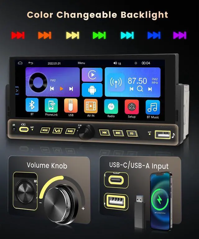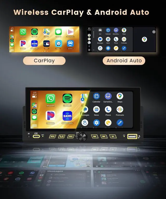 Carplay/Wireless Android Auto/Mirror LinkAudio: MP3/WMA/WAV/APE/FLAC