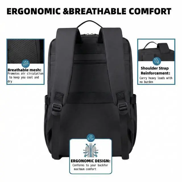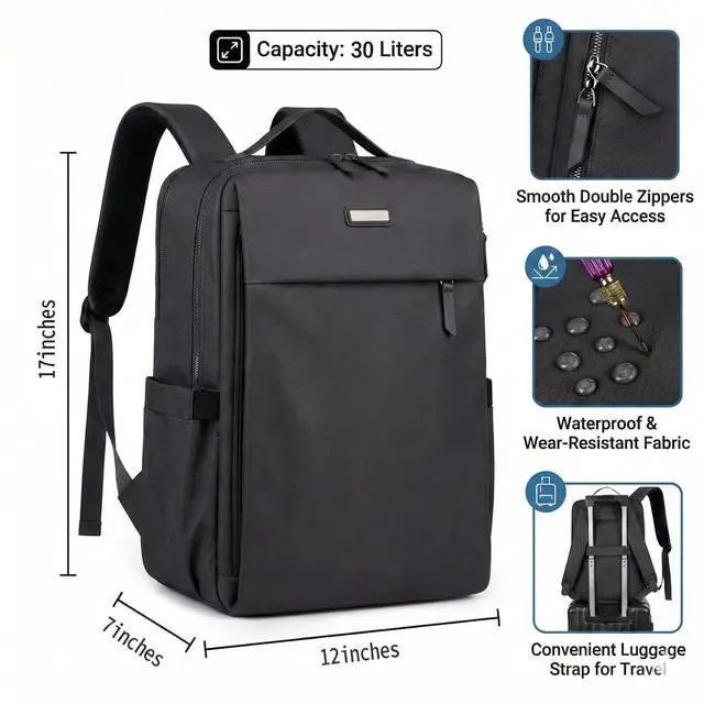 TRAVEL-FRIENDLY & BREATHABLE COMFORT: Say goodbye to sweaty backs and heavy shoulders. Features an ergonomic padded back panel and breathable mesh straps for all-day carrying comfort. The built-in luggage strap easily attaches to your rolling suitcase handle, making airport navigation a breeze. ^^ SLEEK MULTI-SCENARIO DESIGN & IDEAL GIFT: One bag for endless adventures. Available in classic Black or Grey, its sleek profile transitions seamlessly from a professional business briefcase to a high school bookbag. A highly practical gift choice for husbands, travelers, and college students on birthdays or holidays.