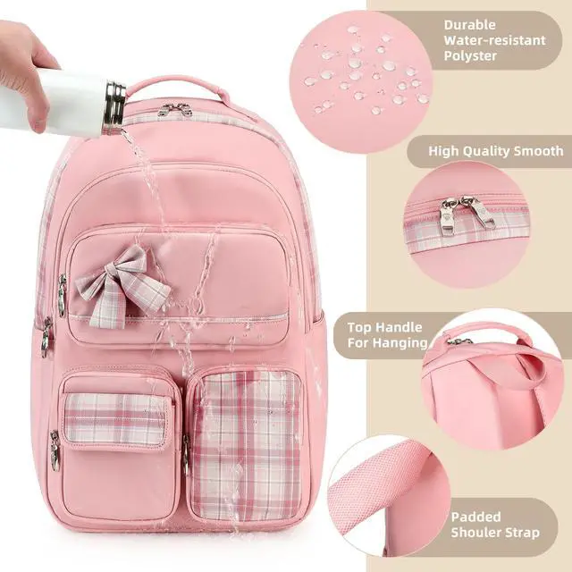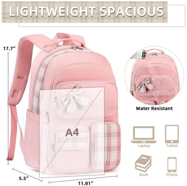 Waterproof Material: Backpack for girls crafted from waterproof, ultra-lightweight, high density premium polyester fabric, light to carry. The zippers closure are used by the premium quality zippers to ensure the long lasting usage ^^ School Backpack -