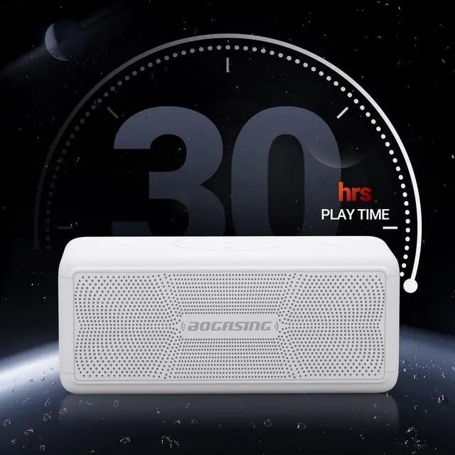 The rugged BOGASING M5 is ready for anything in everywhere. ^^ Non-Stop Battery LifeBOGASING bluetooth speakers synergizes enhanced battery and latest power management technology for up to 30 hours of sublime audio. With its compact size and soft touch, it is easy to hold in your hand and take it with you wherever you go for a whole day. ^^ Top Bluetooth 5.3 VersionThe outdoor speaker adopts advanced Bluetooth 5.3 technology, which provides a faster and more stable bluetooth connection within a normal range of 60 feet. The wide compatibility allows you to connect your smartphone, computer, TV and PC in seconds.