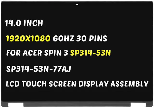 Model Number: Replacement for Acer Spin 3 SP314-53N-77AJ LCD SP314-53N SP314-53GN N19P1 Series SP314-53GN-52GR 71NS 5606 5810 Screen SP314-53N-53SH 56HF 553L 598C 57BS LCD Display Digitizer Panel.