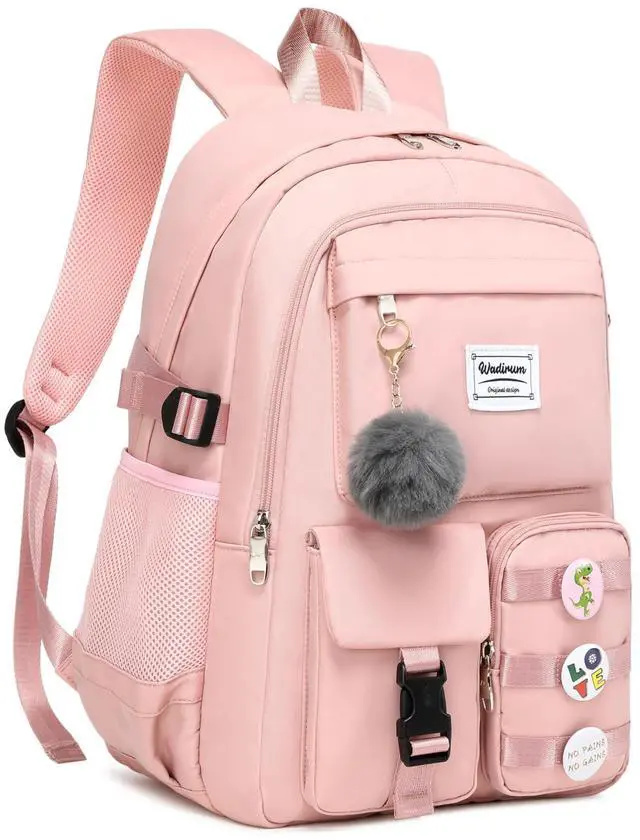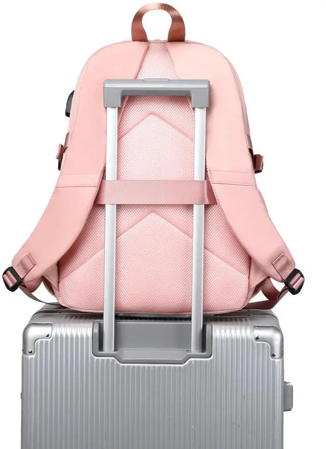 Backpack size: 12.2 *6* 18.5 inches (Length*width*height), weight: 1.5LB. Interior laptop sleeve offers secure storage designed to fit most 15.6 laptops. Adjustable shoulder straps with mesh cushioning and fully padded back panel for personalized comfort. ^^ Featuring a pure color and fashion design, this student backpack adds classic style to your everyday look. This backpack is very suit for school routine, daily use or short trip. ^^ Three fashion front pockets for organizing easily for small items. Back have an luggage strap when your on travel can hang backpack on luggage box.