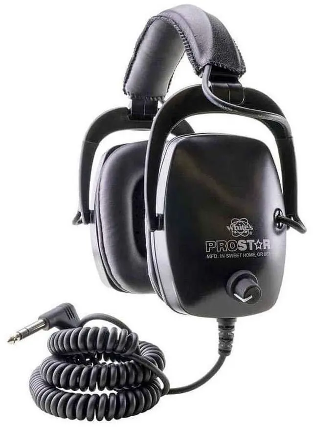 Whites ProStar Headphones a premium headphone by White's specifically for use with all brands of metal detectors with a standard 1/4" headphone jack. Garrett waterproof detectors require the Garrett waterproof headphone jack adapter #162600. Whites ProStar Headphones The Whites ProStar Headphones a premium headphone designed by White's engineers. Made for use with all brands of metal detectors. Whites ProStar Headphones Features Rugged, Oversized Earcups. Hear the oldest deepest targets with crystal clear audio. Water-Resistant Chassis. 50 OHM Mylar Speakers with Titanium Coating. 5k Audio Taper with Right and Left Ratcheting Volume Controls.