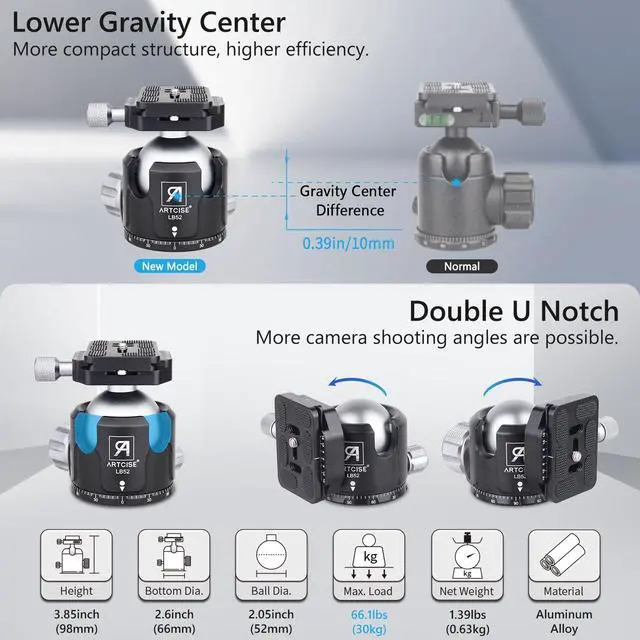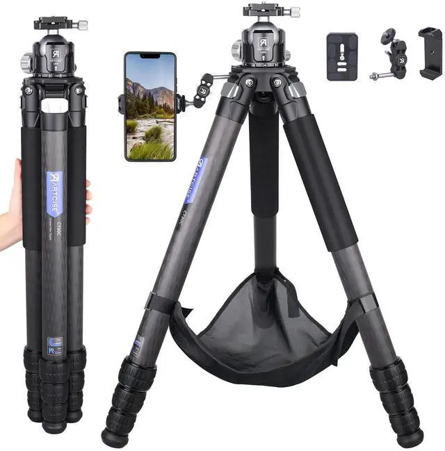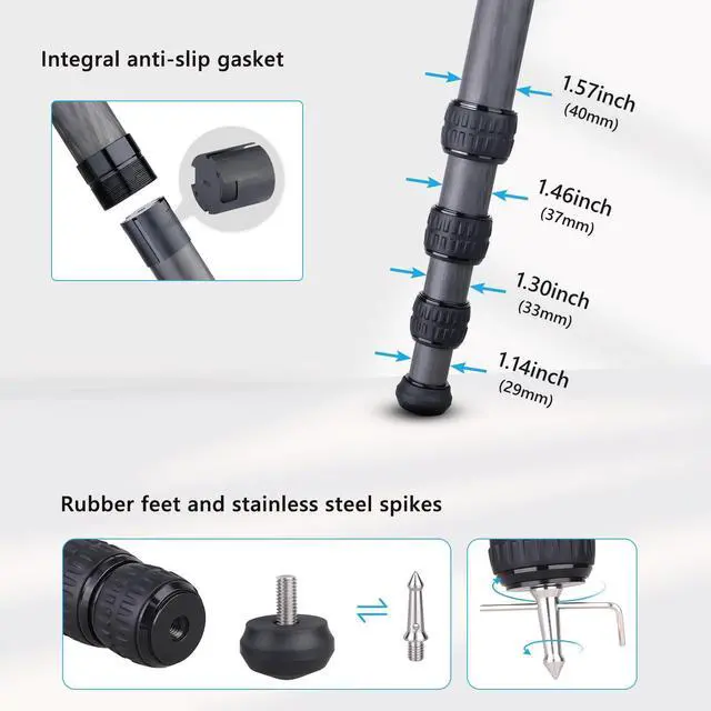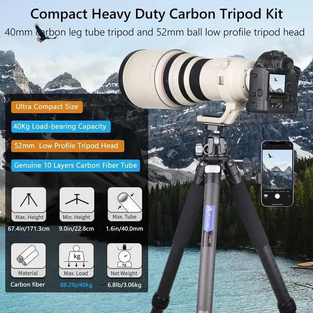 Lightweight Carbon Fiber Tripod: The CT90C travel camera tripod comprises top-notch carbon material and aluminum alloy main parts. CNC precise machining and Anodic Oxidation technology, Smooth operation, and strong durability. Max load is 88.2 lbs /40 kg, Tripod