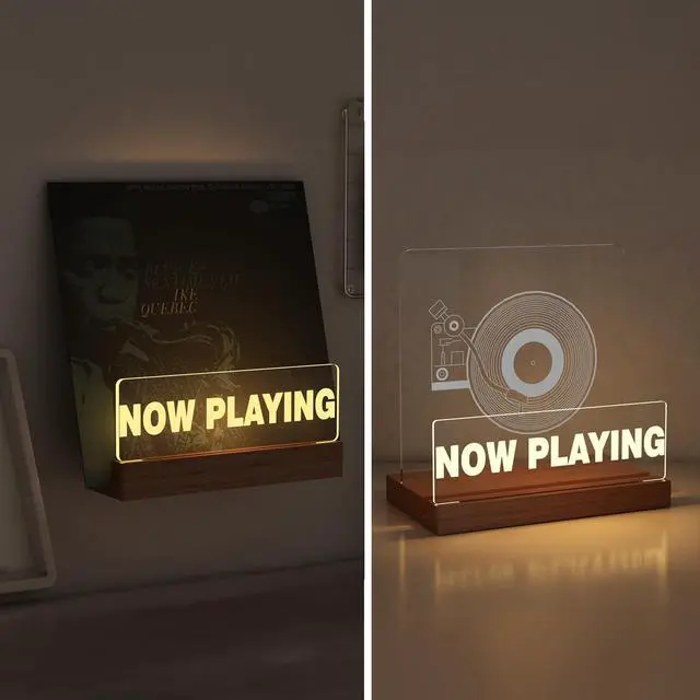 Now Playing Vinyl Record Stand This light up record stand features a unique design that lights up your vinyl records and makes your collection more eye-catching. It help you show off the turntable record you collect and let your guests know your preferences for the music.