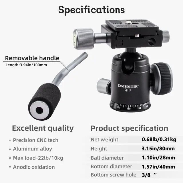 ^^ All-metal construction: The panoramic ball head is made of high-quality aluminum alloy, which is durable, sturdy, and wear-resistant. It has a longer service life than other plastic ball heads.