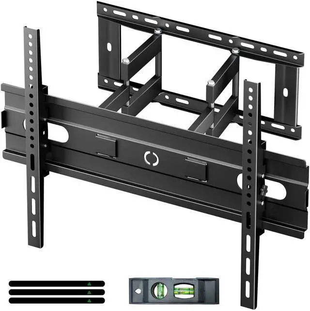 Push it back just 1.96" for a sleek setup. Well-suited for living rooms, corners, or wide seatingthis is the full motion mount that adapts to your space ^^ Easy To InstallationInstall your full motion TV wall mount in minutes with our easy-to-follow manual, pre-labeled hardware, and paper template. Includes 3 post-level adjustment to fine-tune screen alignment. Whether youre mounting a 55", 65", 75", or 85 " TV, youll have it mounted on the wall in no time ^^ Clean Look with Built-in Cable ManagementDual Articulating Arms TVs Mount swivel TV wall mount features an integrated cable routing system to keep cords hidden and your entertainment area organized.