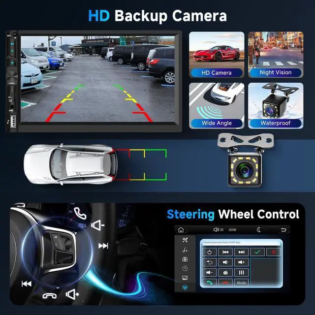 Mirror Link: The 7- inch HD IPS double din car audio receiver, with a resolution of 1024*600, provides a sharp and vivid display. Support for iOS and Android mirror link allowing you to mirror your smartphone screen directly onto the car stereo display ^^ Universal Double Din Radio With Multiple Size: Our double din touch screen car stereo is designed to fit a wide range of vehicles, supporting