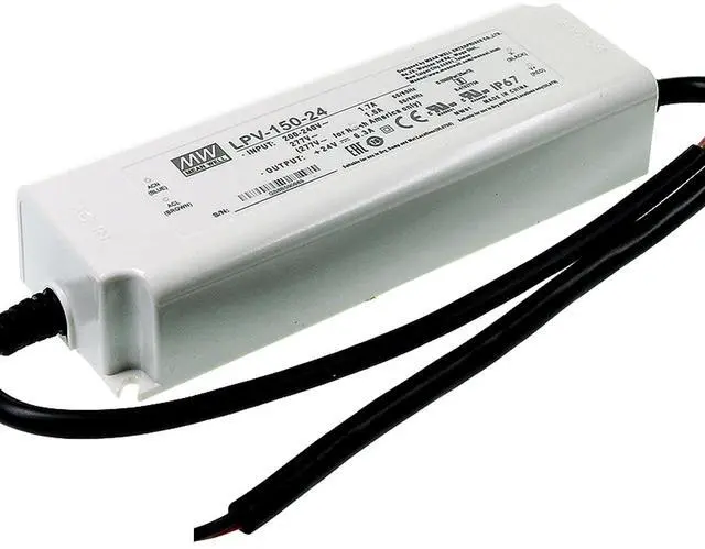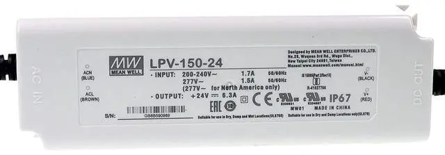DC Power: The LPV-150-24 delivers a consistent 24V DC output at 6.3A, providing 150W of power with an impressive 89% typical efficiency. This ensures reliable operation and minimizes power consumption. ^^ Universal AC Input for