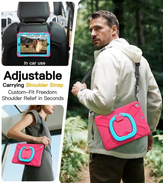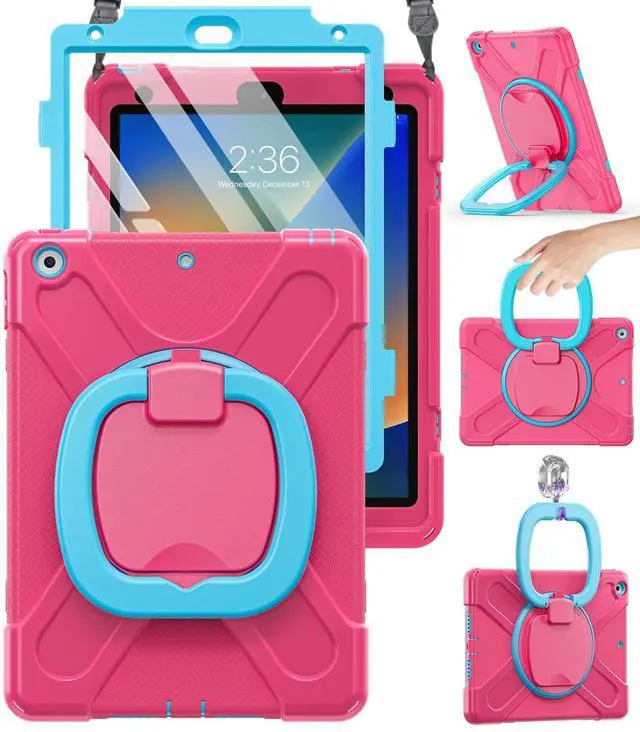 Number: A2197 A2200 A2198), not fit any other model. Cases allows easy access to all features (Cameras, Speaker, Ports and Buttons) ^^ Made of hard PC and shock absorbing Silicone, its three layer structure design provide a good full body protection from drop bumps, and shock; Built-in Anti-scratch Screen Protector protect your 10.2 inch device from being scratched ^^ 360 Degree Rotating /180 Degree Folding Handle Grip provide a convenient way to hang your iPad 9th Generation case whilst in kitchen, washroom, bedroom or grip and carry your iPad 8th/7th Generation case while on the go ^^ Adjustable Carrying Shoulder Strap allows you to carry your iPad 9th/8th/7th Gen case with hand free; Built-in Pencil Holder and Pencil Cap Holder will store your iPad Pencil securely with our case on. Please note that Apple pencil is not include ^^ 360 Degree Rotatable Stable Kickstand offer different angles (type or view) to display your iPad 10.2 inch case 2021/2020/2019 steadily