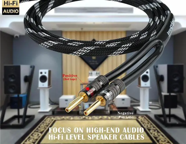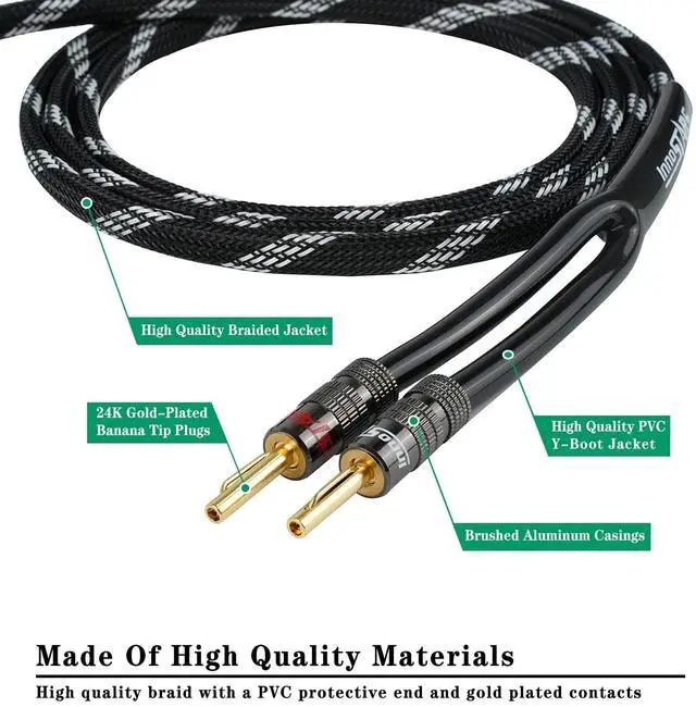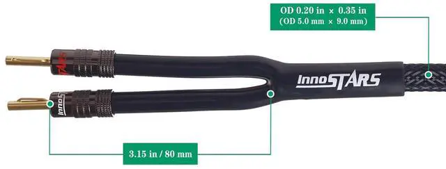 ^^ BRAIDED SPEAKER WIRE BANANA TIP - Our InnoStars 14AWG high end terminated speaker wire with banana plugs come with heavy duty braided nylon jacket, premium PVC Y-Boot jacket on each end to better strain relief and color coding to distinguish polarity. Typically, a red InnoStars logo banana plug is positive and white InnoStars logo banana plug is negative. ^^ PLUG AND PLAY - InnoStars high quality banana plug speaker cable for bi-wire or bi-amp without the hassle, customization, and cutting your own banana plug speaker wire. Quick and easy installation for connecting a speaker to Binding Post Wall Plate, Home Theater, Audio/Video Receiver, ^^ PACKAGE CONTENTS - Each package includes 1pc InnoStars speaker cable with dual banana plugs for your hifi home stereo speaker system.