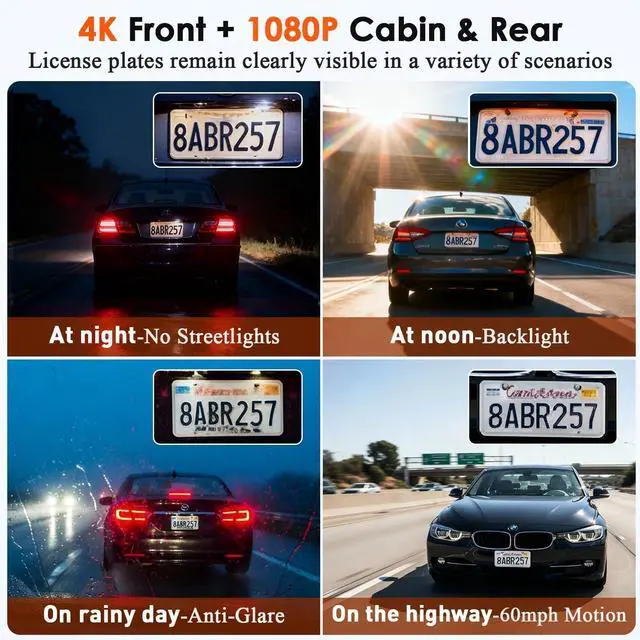Coverage: Capture every detail with 4K front + 1080P rear and interior lenses (170/160/150). This 3 channel dash cam is perfect for rideshare or taxi driver. Safeguard your car, passengers, and family with reliable, high-definition footage. ^^