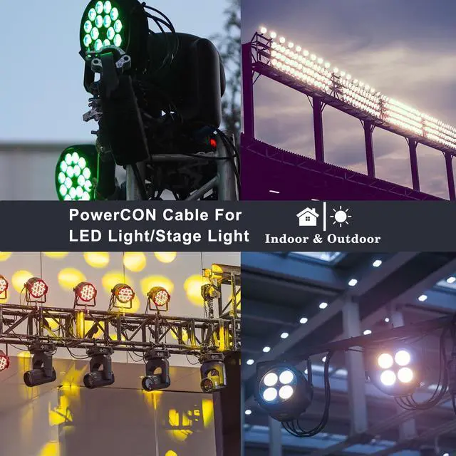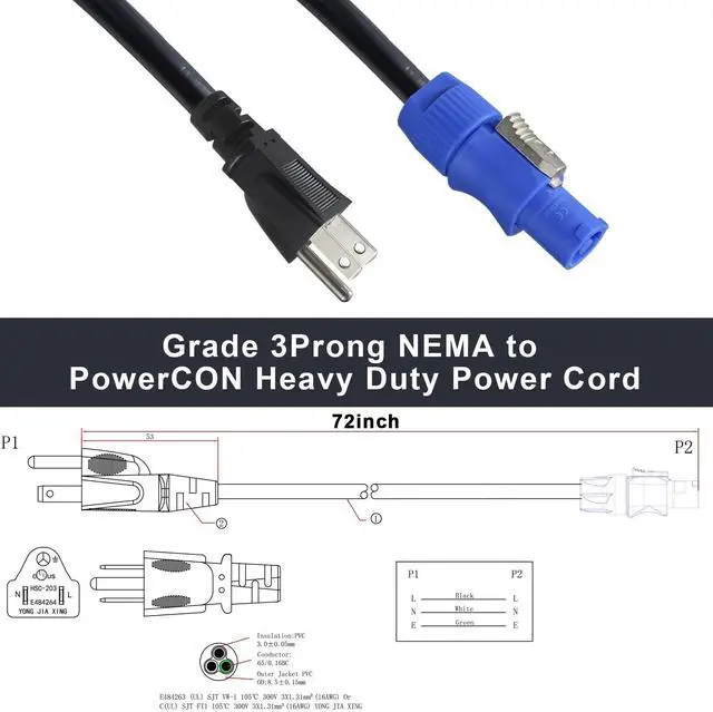 Rating: 20A/250 VAC. ^^ Feature - IP65 Waterproof PowerCON Connector can provide dust protection and water protection; PowerCON Male NAC3FCA blue connectors also have a lock can prevent accidental disconnect. ^^ Application - This Heavy Duty PowerCON Cable usually for indoor and outdoor, such as stage light, stereo, loudspeaker, LED screen, lighting equipment, amplifiers, audio. It can also be used as electricity in power cables in the measurement, test and control, automatic and machine tool industries, and medical devices and other industrial equipment.