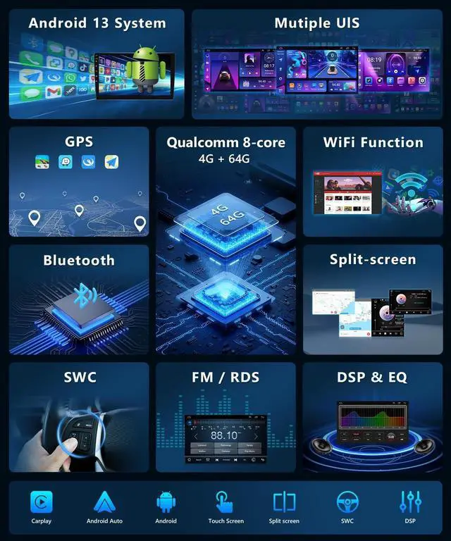 Safety Tip: Always walk around your vehicle to check before driving ^^ 5G WiFi & Online / Offline GPS Navigation - Never get lost again. Connect the car play radio replacement to 5G WiFi for real-time traffic updates on Google Maps/Waze. In remote areas, rely on the built-in GPS navigation system receiver for accurate offline navigation without data ^^ Not sure if this is compatible with your car? Just let us know your car model and production year, and well help you confirm